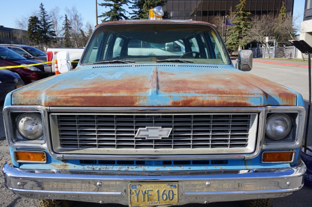 The Dalton Highway aka Alaska Rte 11 is a rugged, 414-mile gravel and dirt road in Alaska, running north from Livengood, AK to the Prudhoe Bay oilfields. It was built for the Alaska Pipeline and is known for it's challenging conditions such as dust, mud, potholes, heavy truck traffic, and limited services, offering spectacular wildlife and scenery, including the Arctic Foothills and tundra. A trip on this road requires careful preparation with multiple spare tires and an environment appropriate vehicle. On September 29, 1974 this 1974 Chevrolet Suburban, became the first vehicle ever to traverse the entire length of the North Slope Haul Road now named the Dalton Highway. This Chevrolet Suburban was on display at the Petroleum Club of Anchorage for an exhibit marking the 50th anniversary of construction of the Haul Road. The exhibit opened on April 29, 2024 at the Petroleum Club of Anchorage in the city’s Midtown district. It is the first exhibit created by the Alaska Oil and Gas Historical Society. (Photo by Yereth Rosen/Alaska Beacon) ![]() Sign describing the 1974 Chevrolet Suburban that was the first vehicle to drive the entire North Slope Haul Road. ![]() Donated by Alyeska Pipeline Service Co., the vehicle is no longer being driven, as the keys were misplaced in 1980 and have never been replaced.